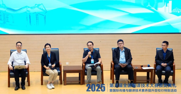 北京外國語大學(xué)、上海外國語大學(xué)、復(fù)旦大學(xué)、對外經(jīng)濟貿(mào)易大學(xué)、大連外國語大學(xué)有關(guān)同志分別以《口譯技術(shù)在中國學(xué)界的接受度歷時對比研究》《同聲傳譯人機協(xié)作新范式:自動語音識別(ASR)與自動語音翻譯(AST)技術(shù)的應(yīng)用及啟示》《人工智能時代翻譯跨學(xué)科人才培養(yǎng)模式探索》《生成式人工智能時代的翻譯技術(shù)教學(xué):內(nèi)容與模式》《生成式人工智能背景下翻譯教育的發(fā)展與創(chuàng)新》《智能時代人機協(xié)同翻譯的譯者主體性審思》為題作主旨報告。