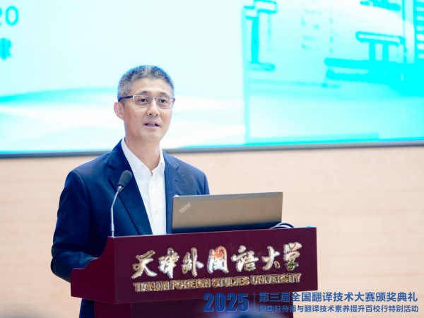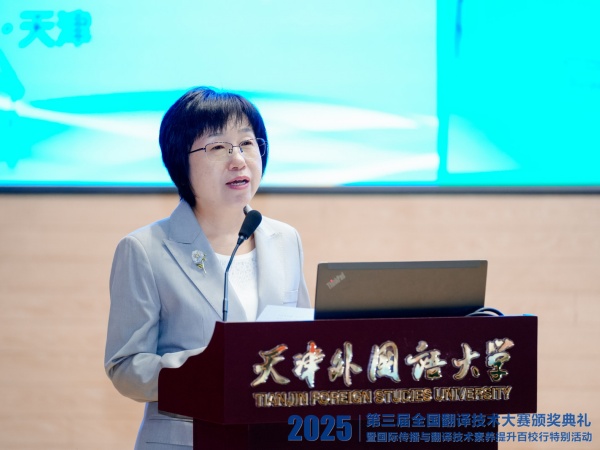 9月20日,第三屆全國翻譯技術(shù)大賽頒獎典禮暨國際傳播與翻譯技術(shù)素養(yǎng)提升百校行特別活動在天津舉辦。中國外文局總編輯、中國翻譯協(xié)會常務(wù)副會長兼秘書長高岸明,天津外國語大學(xué)黨委書記周紅蕾在頒獎典禮致辭并為獲獎代表頒獎。