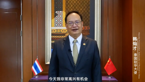 中國(guó)—東盟中心秘書長(zhǎng)史忠俊、菲律賓駐華大使吉米、泰國(guó)駐華大使韓燦才發(fā)表視頻致辭。中國(guó)外文局副局長(zhǎng)余應(yīng)福,對(duì)外經(jīng)濟(jì)貿(mào)易大學(xué)副校長(zhǎng)、黨委副書記文君,國(guó)務(wù)院國(guó)資委新聞中心副主任張義豪出席開(kāi)幕式并致辭。