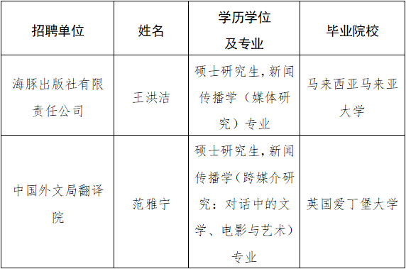 根據(jù)公開(kāi)招聘工作有關(guān)規(guī)定,現(xiàn)將我局所屬企事業(yè)單位接收海外留學(xué)生予以公示。公示期間,如有問(wèn)題,請(qǐng)向我局反映。