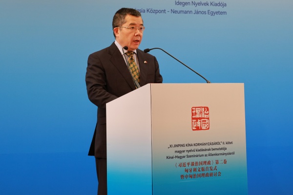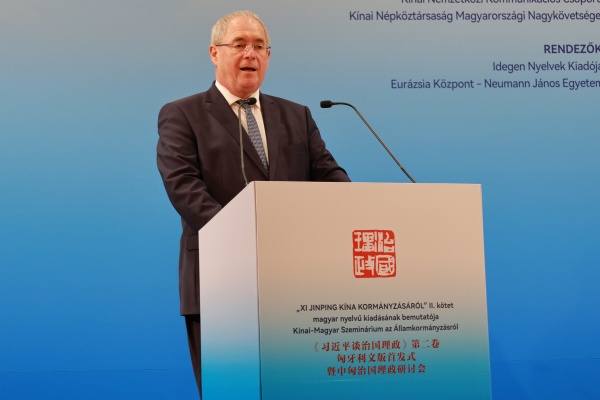 當(dāng)?shù)貢r(shí)間10月17日,《習(xí)近平談治國(guó)理政》第二卷匈牙利文版首發(fā)式暨中匈治國(guó)理政研討會(huì)在匈牙利首都布達(dá)佩斯舉行。中國(guó)外文局副局長(zhǎng)余應(yīng)福,匈牙利國(guó)會(huì)副主席法澤考什·山多爾,中國(guó)駐匈牙利大使龔韜,匈牙利國(guó)會(huì)議員維吉·伊姆雷,匈牙利外長(zhǎng)代表、中國(guó)司司長(zhǎng)托特-梅薩洛什·瑪爾道,匈牙利約翰·馮·諾依曼大學(xué)歐亞中心主任、匈牙利駐上海前總領(lǐng)事霍爾瓦特·樂(lè)文特等中匈兩國(guó)嘉賓和政界、高校、智庫(kù)、媒體代表約200人出席活動(dòng)。