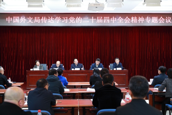 10月24日,中國外文局局長常勃主持召開專題會議,傳達學習黨的二十屆四中全會精神,對中國外文局學習宣傳貫徹會議精神進行部署。副局長于濤、謝剛出席會議。