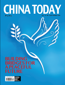 本期《今日中國(guó)》(阿文、英文)封面通過(guò)故事性的報(bào)道,回顧了戰(zhàn)爭(zhēng)中的人道主義精神與國(guó)際友誼,分別聚焦參加“今日中國(guó)會(huì)客廳——和平之橋:大灣區(qū)與歐洲青年領(lǐng)袖對(duì)話(huà)”中歐青年領(lǐng)袖,“里斯本丸”事件獲救英軍戰(zhàn)俘的后代,上海猶太難民紀(jì)念館,有著“南京好人”之稱(chēng)的約翰·拉貝的孫子、德國(guó)海德堡大學(xué)名譽(yù)教授、全球約翰?拉貝交流中心主席托馬斯·拉貝,講述正在發(fā)生和曾經(jīng)發(fā)生的、閃爍著人道主義精神和國(guó)際友誼的故事,從不同側(cè)面展現(xiàn)推動(dòng)構(gòu)建人類(lèi)命運(yùn)共同體、共筑和平之橋的當(dāng)代價(jià)值和意義。
