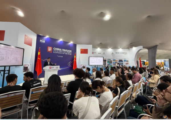 為深度參與全球氣候治理,講好我國海洋生態(tài)文明建設(shè)及可持續(xù)發(fā)展故事,向國際社會傳遞中國綠色發(fā)展理念,10日下午,“美麗海灣美好生活”海洋生態(tài)文明故事匯暨《中國可持續(xù)發(fā)展報告(2025)》發(fā)布活動在大會中國角舉行。生態(tài)環(huán)境部副部長李高、中國外文局副局長余應(yīng)福致辭。海洋負排放國際大科學(xué)計劃國際合作部部長張傳倫,美國哥倫比亞大學(xué)可持續(xù)發(fā)展管理碩士項目副主任、教授石天傑(Satyajit Bose)等中外嘉賓作主旨演講。參加COP30大會的各國百余位嘉賓參與活動。