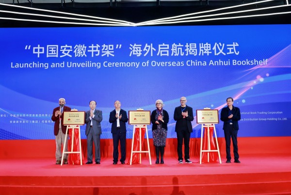 活動期間,國圖集團發(fā)揮海外渠道優(yōu)勢,與安徽新華發(fā)行集團共同舉辦了“中國安徽書架”海外啟航揭牌儀式。中國書刊發(fā)行業(yè)協(xié)會理事長艾立民,安徽省委宣傳部副部長、省新聞出版局(版權局)局長方曉利,安徽新華發(fā)行集團黨委書記、董事長金濤,以及尼泊爾當代出版公司總裁凱蘭·高塔姆,南非Loot公司圖書商業(yè)部總監(jiān)馬丁·貝克爾,大洋洲作家與出版商協(xié)會名譽主席露易絲·拉塞爾共同為首批落地海外的“中國安徽書架”揭牌。