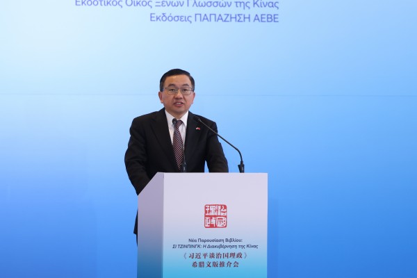 謝剛表示,黨的二十屆四中全會(huì)審議通過的《中共中央關(guān)于制定國民經(jīng)濟(jì)和社會(huì)發(fā)展第十五個(gè)五年規(guī)劃的建議》,系統(tǒng)部署了擴(kuò)大高水平對(duì)外開放等重大舉措,充分展現(xiàn)了中國堅(jiān)持開放合作、互利共贏的信心。他指出,《習(xí)近平談治國理政》希臘文版的出版,將幫助希臘讀者深入了解新時(shí)代中國以全面深化改革為根本動(dòng)力、以人民至上為根本立場、以文明互鑒為對(duì)話橋梁、以多邊主義為全球治理基本路徑的治國理政智慧。期待以書為媒,進(jìn)一步拉緊中希文明互鑒和務(wù)實(shí)合作紐帶,為推動(dòng)兩國全面戰(zhàn)略合作伙伴關(guān)系發(fā)展注入新的思想動(dòng)力。